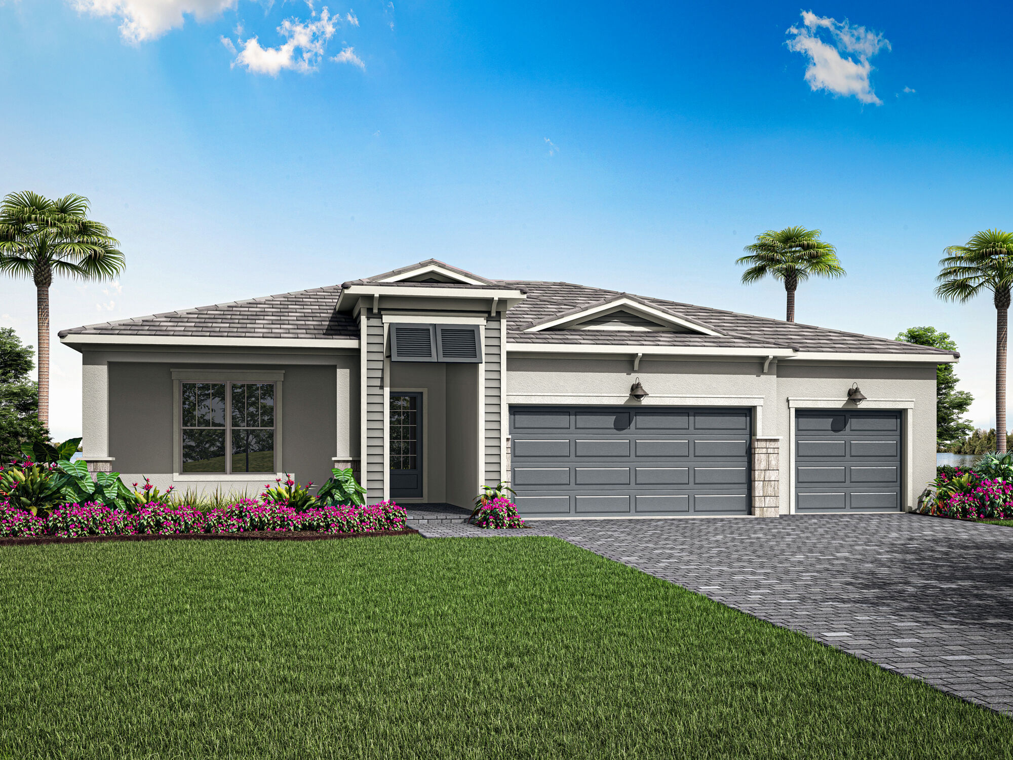 The 2,722 square foot Carlton floorplan provides generous amounts of shared and private living space, with a large owners suite on the first level boasting its own gigantic walk-in closet. A flex room offers versatile space for anything you wish, while the large combined Great Room, dining area and kitchen with breakfast bar and walk-in pantry let you entertain, cook or relax in wide-open comfort. Take your entertaining outside with the luxurious large covered lanai. All of the secondary bedrooms share a full bath with double sinks. The laundry room is located inside for added convenience.